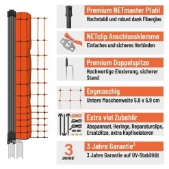 VOSS.farming Classic 50m Hühnerzaun, Geflügelzaun, Geflügelnetz, 112cm, 16 Pfähle, 2 Spitzen