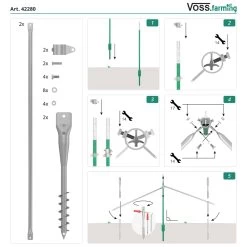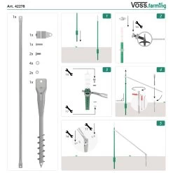 VOSS.farming Set: 200x T-Pfosten 182cm, 200x Kopfisolatoren, 200x Bandisolatoren Und Handramme