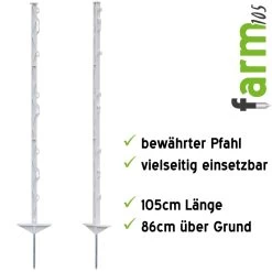 20x VOSS.farming Weidezaunpfahl 103cm, 2 Spitzen – Extra Stabiler Stand