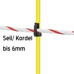 Egal ob mit Litze, Seil und sogar Band bis 20 mm – der Fiberglaspfahl ist ein geeigneter Allrounder. Der seitliche Tritt, sowie die 13 cm lange Metallspitze ermöglichen Ihnen den praktischen und schnellen Aufbau. Durch den sehr robusten Überzug des Weidepfostens ist dieser praktisch splitterfrei. Somit ist der VOSS.farming Fiberglaspfahl in hohem Maße langlebig und mechanisch belastbar.