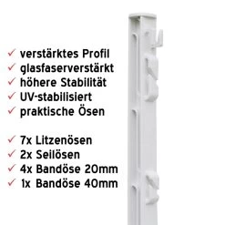 - der Weidezaunpfahl ist für Litze, Seil, Kordel und Bänder bis 40 mm geeignet