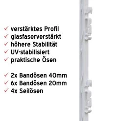 - 20x VOSS.farming Steigbügelpfahl, 115cm, Kunststoff, glasfaserverstärkt, weiß