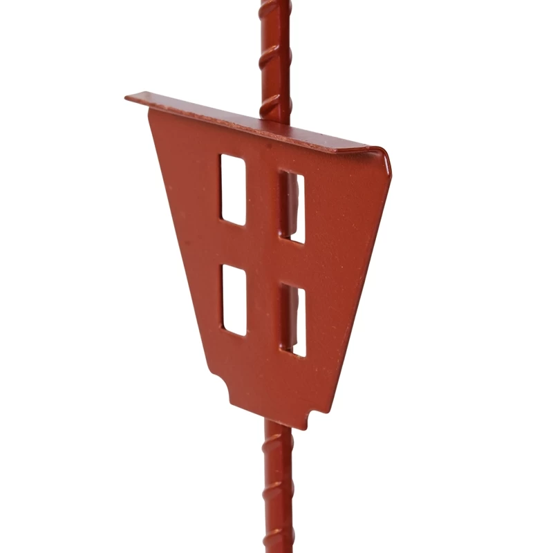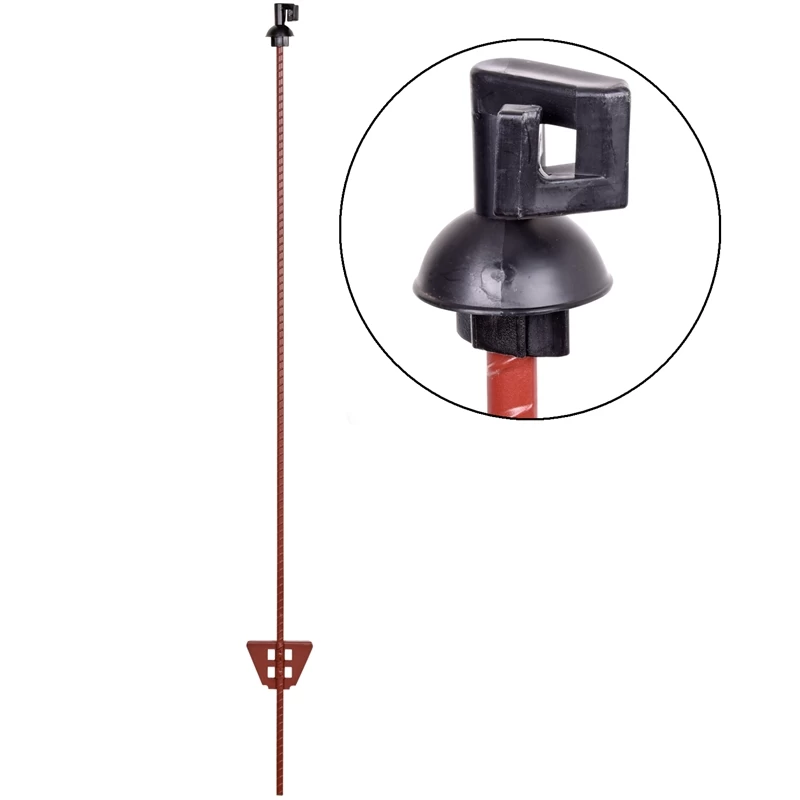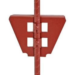 Mit seinem stabilen, 2 x verschweißten Doppeltritt ist der Weidezaunpfosten schnell und einfach zu montieren. Die dunkelrote Pulverbeschichtung ist witterungsbeständig und der Pfahl ist auch in dichterem Bewuchs leicht wiederzufinden.