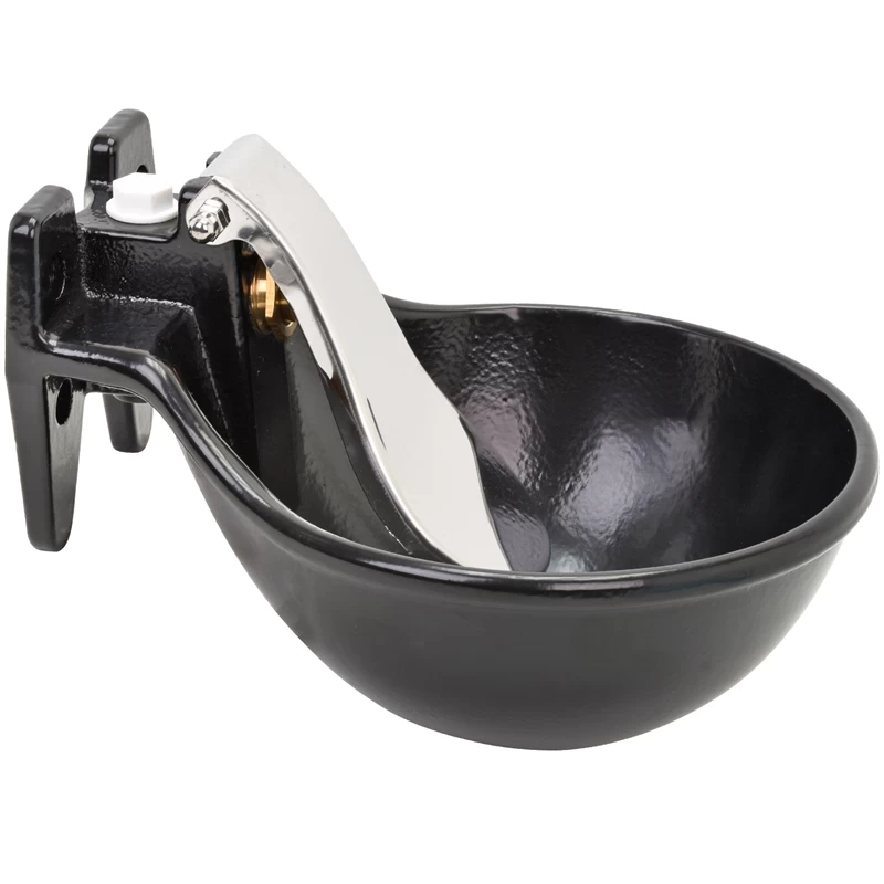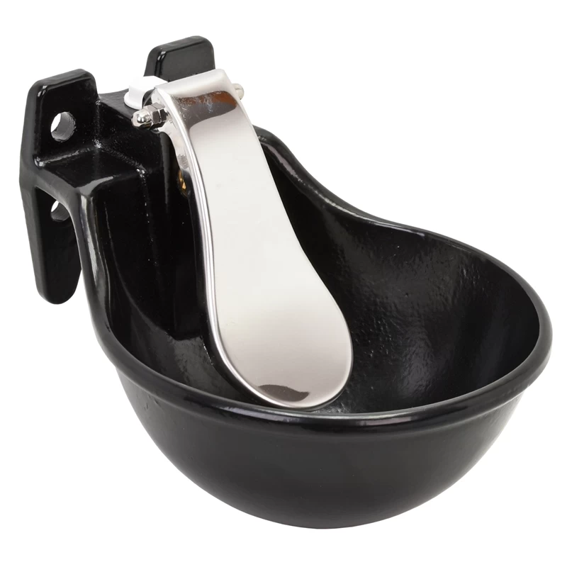 - 2x Tränkebecken aus Gusseisen mit Edelstahl-Druckzunge, für Pferde und Rinder, schwarz