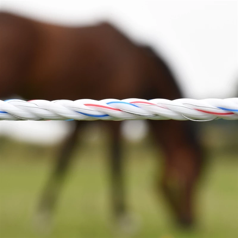 - vielseitig einsetzbares Weidezaun-Seil für alle Arten von Elektrozaun, auch bei langen Zaunanlagen