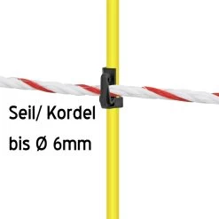 Der Pfahlabstand ist abhängig von der Bodenbeschaffenheit, er sollte ca. 5m betragen. Durch Zusatzisolatoren (Art. Nr. 44496) können weitere Zaunhöhen realisiert werden.