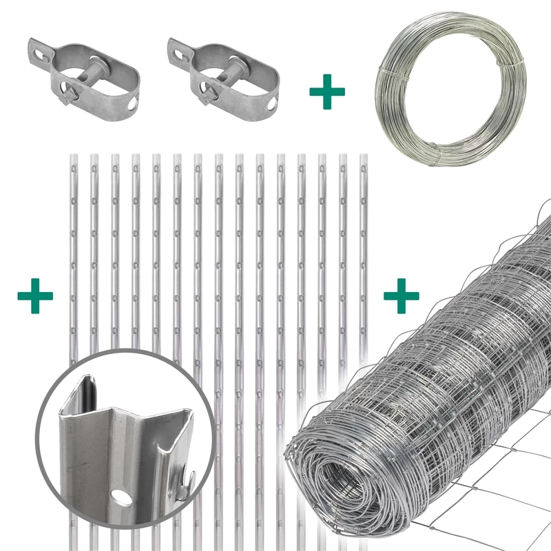 50m VOSS.farming Classic Wildzaun Komplettset 100/8/15 + Z-Profilpfosten + Spanndraht + Drahtspanner