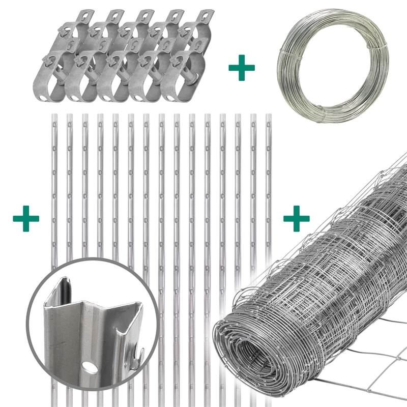 50m VOSS.farming Classic Wildzaun Komplettset 100/8/30 + Z-Profilpfosten + Spanndraht + Drahtspanner