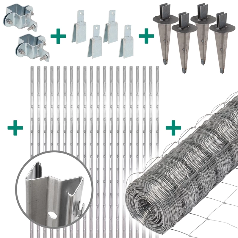 50m VOSS.farming Premium Plus Wildzaun Komplettset 125/13/15 + Z-Profilpfosten + Schellen + Kappen + Erdteller