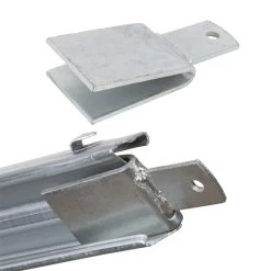 Für noch mehr Standfestigkeit und Stabilität können Sie Querverstrebungen anbringen. Hierfür wird der Z-Profilpfahl unten in die Aufnahmen des Erdtellers und oben in die Kappe gesteckt. Den Erdteller schlagen Sie im 45°-Winkel in die Erde, so verhindern Sie ein weiteres Eindringen oder Wegrutschen der Querstrebe. Jetzt können Sie die Schelle und die Kappe mit dem Z-Profilpfosten verschrauben. Durch ein Verschieben der Schelle können Sie den Druck auf die Querstrebe verändern, sodass der Z-Profilpfahl einen festen Halt hat.