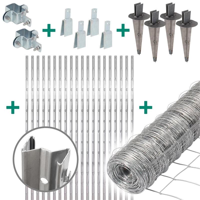 50m VOSS.farming Premium Wildzaun Komplettset 125/13/30 + Z-Profilpfosten + Schellen + Kappen + Erdteller