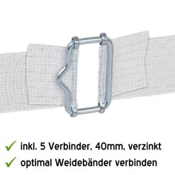 5x VOSS.farming Weidezaunband, 40mm breit mit 9x 0,16 Niro + 5x Verbinder + 1x Warnschild