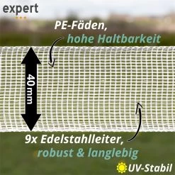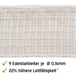 - 22% höhere Leitfähigkeit als ein Standard-Weidezaunband (mit 8x 0,16 Niro)