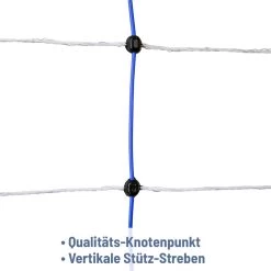 In der Vertikale werden anstelle des weichen Litzenmaterials steife Kunststoffstreben verwendet. Diese sind im Abstand von 30cm mit den horizontalen Litzen dauerhaft verbunden und sorgen so für einen kompakten Stand – auch im hügeligen und unebenen Gelände!