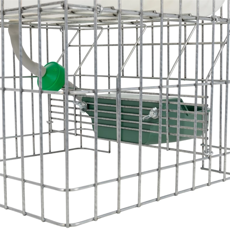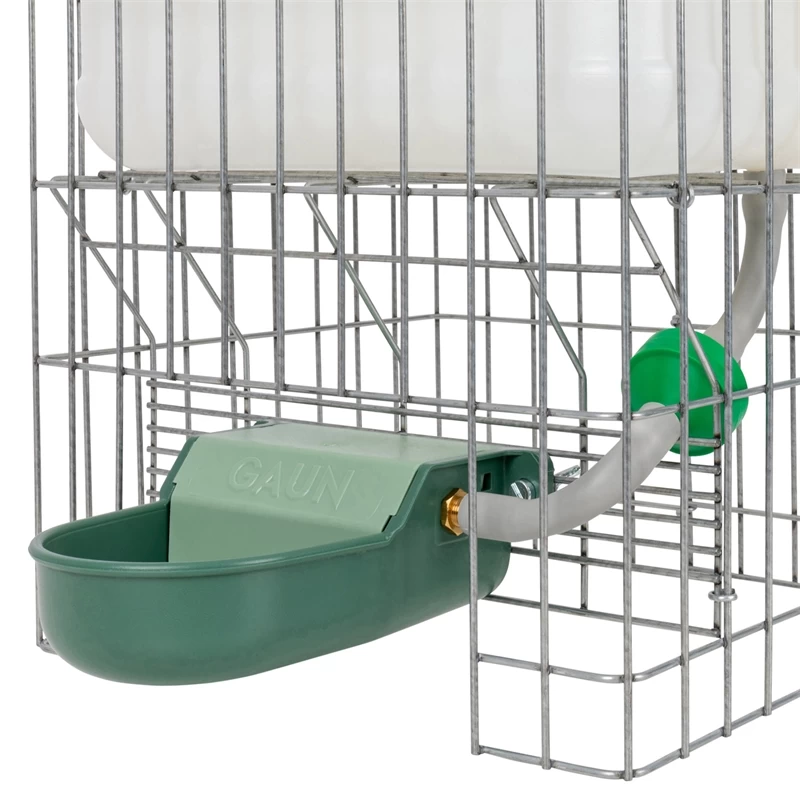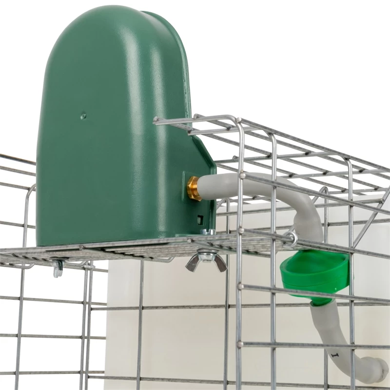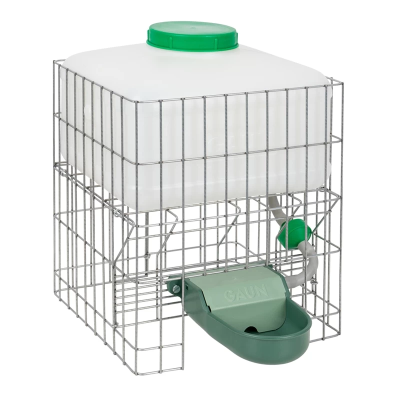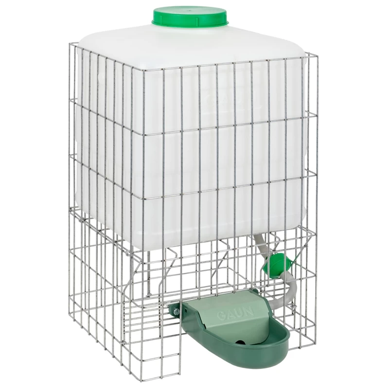 Sie besteht aus einem Kunststoffbehälter mit einem Schutzgitter, einem integrierten Wasserfilter und einem flexiblen Zuleitungsschlauch. Außerdem verfügt die Tränke über einen Kunststoff-Trinknapf. Die Tränke kann von oben befüllt werden und hat ein Volumen von 10 Liter oder 20 Liter (je nach Ausführung).