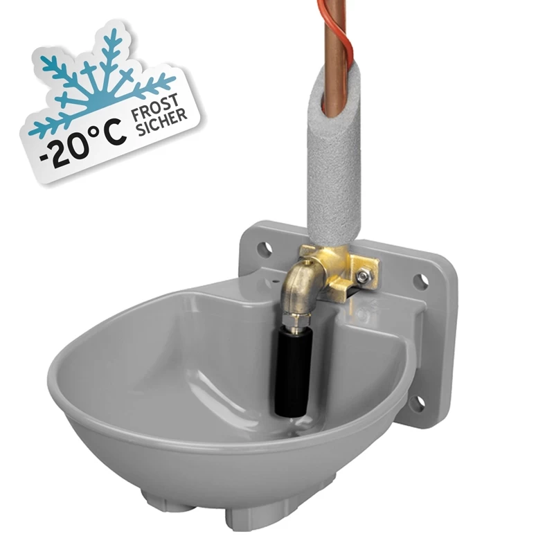 - Heizleistung: 54 W (33 Watt Tränke + 21 Watt Rohrheizung) Beheizung vom Tränkebecken, Ventil und bis ca. 2 m Wasserleitung.