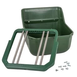 Der eckige Trog kann schnell und einfach mit wenigen Handgriffen fest an die Boxenwand montiert werden.