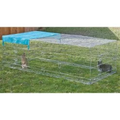 Ein Element ist mit einer Tür versehen, die einen einfachen Zugang zum Gehege ermöglicht. Das Set kann mit zusätzlichen Elementen erweitert werden, um den Platz für Ihr Kleintier zu vergrößern.