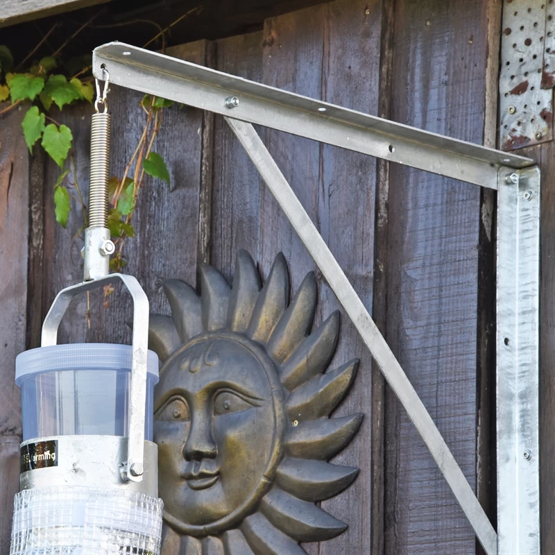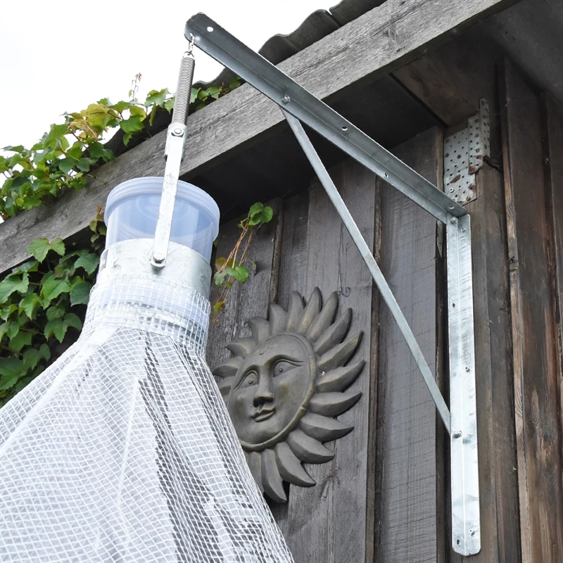 Mit dieser stabilen Halterung aus verzinktem Stahl können Sie Ihre Bremsenfalle bspw. an einer Wand befestigen. Einfach anschrauben, die Falle aufhängen, fertig.