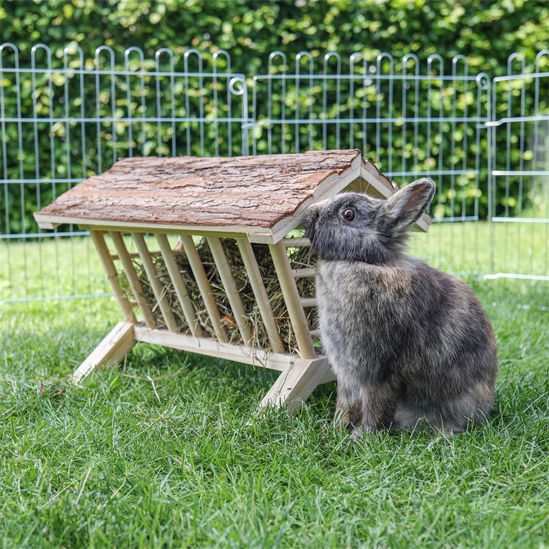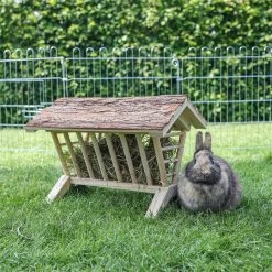 Diese Heukrippe ist aus Holz gefertigt und ist sehr robust, um den Bedürfnissen von Kaninchen und anderen Kleintieren gerecht zu werden. Die Krippe bietet ausreichend Platz für Heu und sorgt für eine trockene Aufbewahrung.
