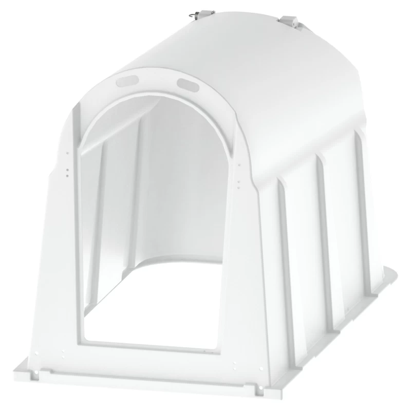 Das CalfHouse PE UV+ hat durch zusätzliche UV-Stabilisatoren und einer reinweißen Oberfläche eine hohe Lebensdauer und Isolationswirkung. Dadurch wird die Sonnenstrahlung absorbiert, sodass sich der Innenraum der Kälberhütten nicht so stark aufheizt. Außerdem verringert sich der natürliche Verlust der Materialeigenschaften. Gefertigt ist das CalfHouse PE UV+ aus hochwertigem, schlagfestem HDPE-Kunststoff mit integrierten UV-Stabilisatoren.