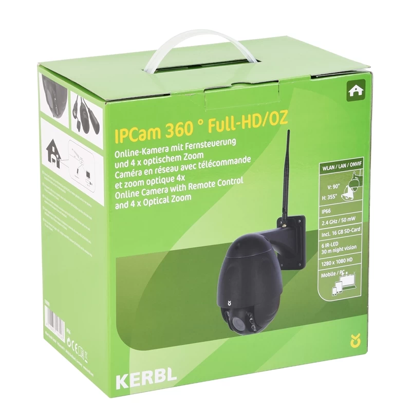 - 1x Kerbl IPCam 360° FHD Internet-Stall-Kamera mit Zoom und Nachtsicht
