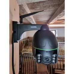 So genannte PTZ-Kameras (Pan-Tilt-Zoom) können über eine Software vom PC, Tablet oder Smartphone ferngesteuert und mit einem Sichtwinkel von 355° horizontal und 90° vertikal bewegt werden. Mit der Kamera ist es möglich Ihren Stall oder Hof in Echtzeit zu überwachen, Schnappschüsse zu machen oder aufzuzeichnen. Außerdem bietet die Kamera Bewegungsmeldung und verschiedene Alarmfunktionen. Für die Nutzbarkeit ist der Zugriff von verschiedenen Endgeräten (Smartphone, PC oder Tablet) möglich, auf dem Smartphone wird die Kamera über die kostenlose App eyecloud gesteuert. Auch nachts ist diese Kamera verwendbar, durch die Nachtsicht-Funktion (Lichtsensor, Bildsensor, sowie IR-LEDs) können Sie auch in der Dunkelheit überwachen, bis zu 30 Meter ist die Nachtsicht möglich durch die 6 Infrarot-LEDS. .