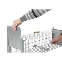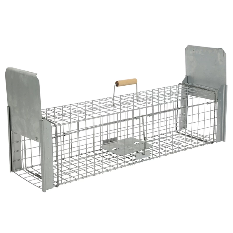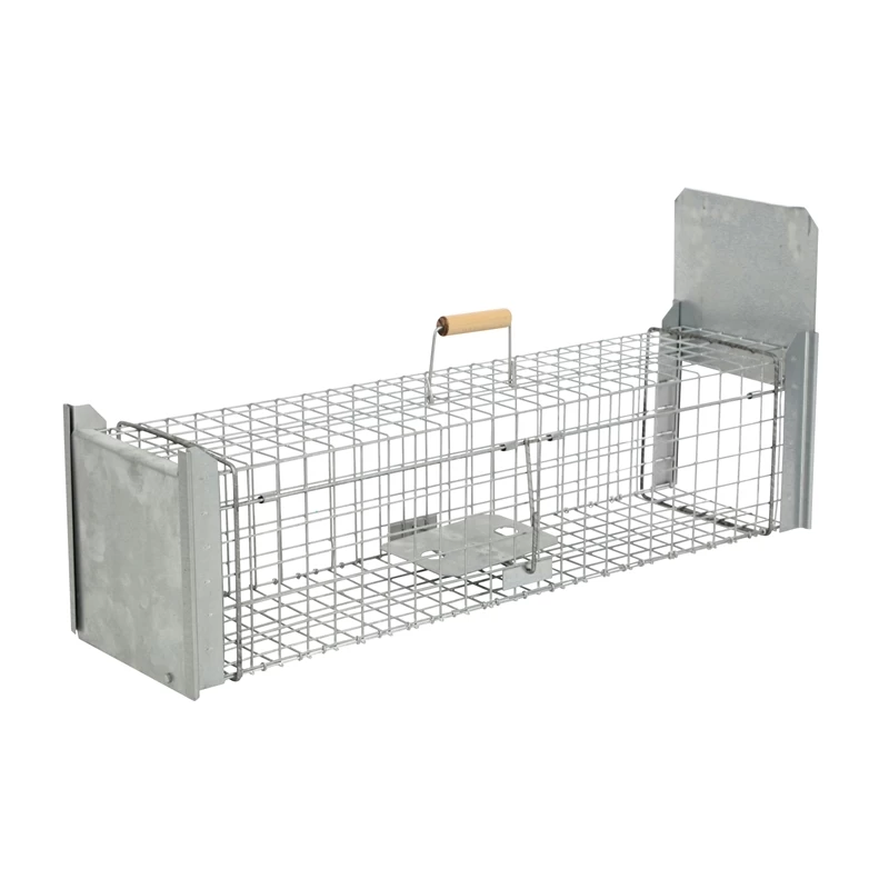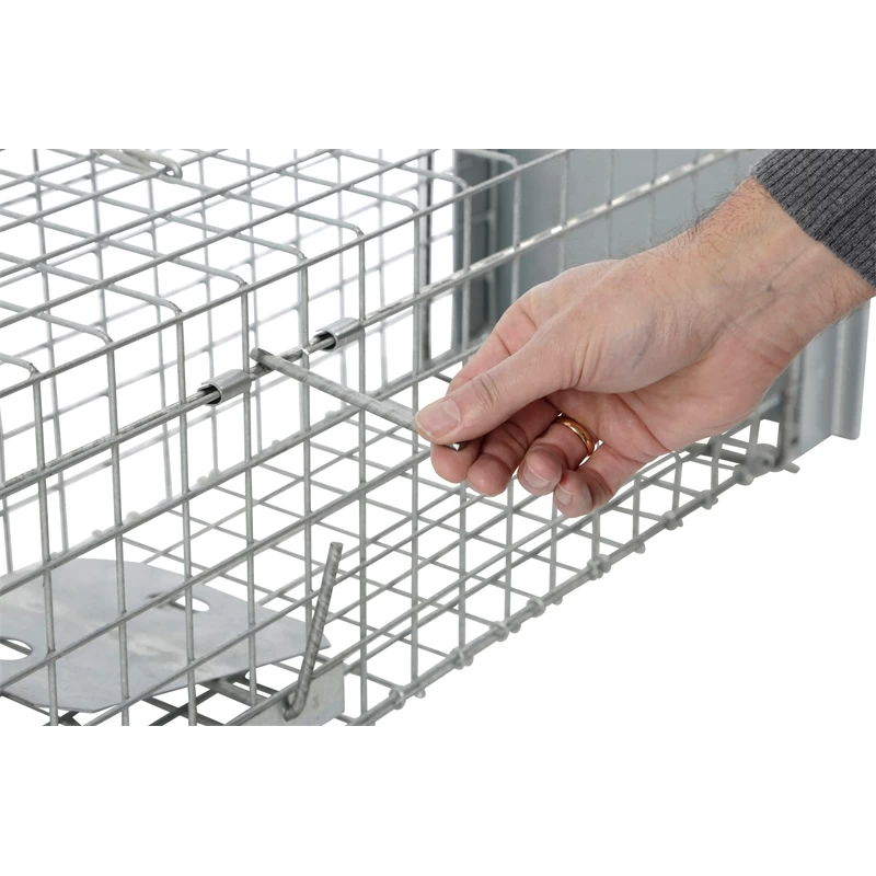 Das feuerverzinkte Drahtgeflecht gewährleistet eine lange Haltbarkeit, außerdem ist die Tierfalle stabil und robust. Funktionssicher ist die Kastenfalle sowohl draußen als auch drinnen.
