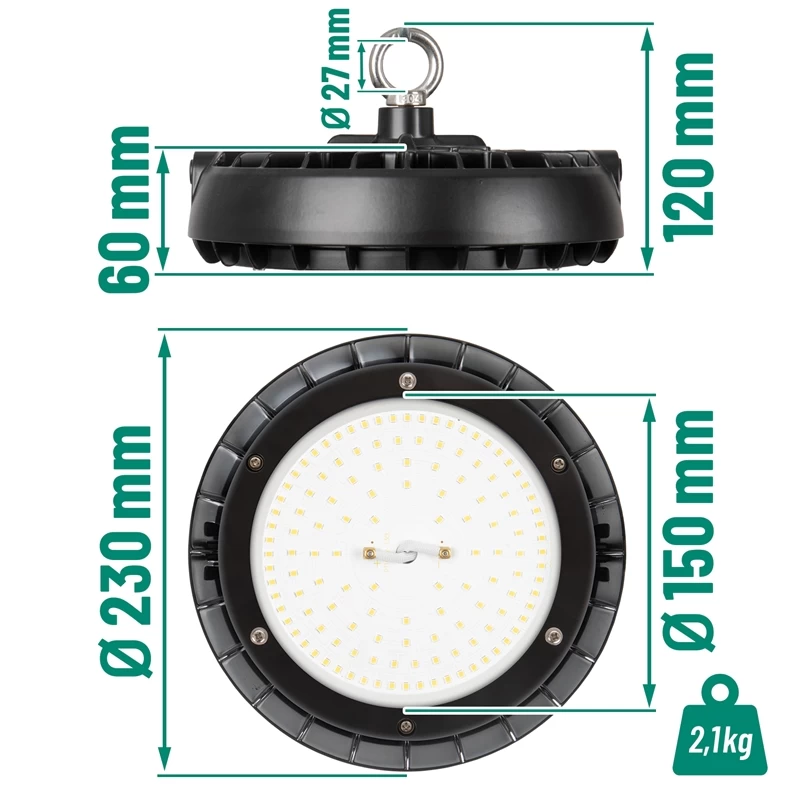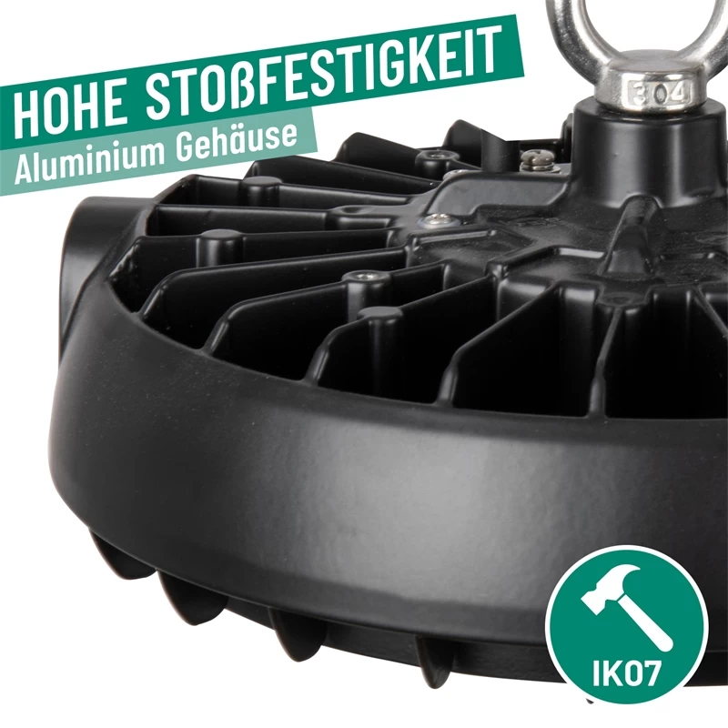 Der Strahler ist für hohe Deckenkonstruktionen geeignet und es ist sowohl eine direkte wie auch abgehängte Deckenmontage möglich. Bei dieser LED-Lampe haben Sie eine hohe Lichtausbeute und das neutral weiße Licht ermöglicht langes, angenehmes Sehen. Der Strahler ist flackerfrei und hat eine spezielle Kühlkörperform für eine optimierte Wärmeabführung. Zudem ist der Hallenstrahler staubdicht und strahlwassergeschützt, somit nimmt er keinen Schaden, wenn die jährliche Reinigung des Stalls mit dem Hochdruckreiniger vorgenommen wird.