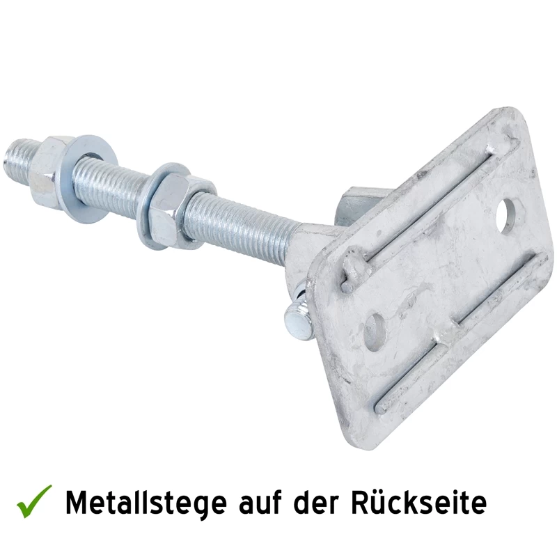 - Anschlussplatte mit zwei Metallstreifen für einen festen Sitz an Pfählen