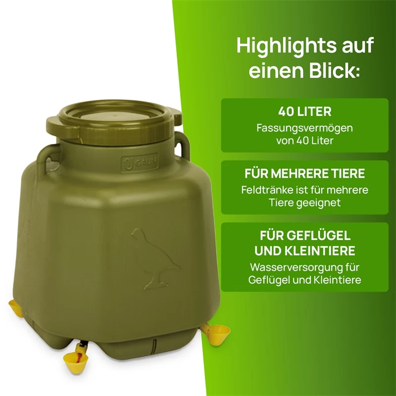 Outdoor Feldtränke für Geflügel und Kleintiere, 40 Liter