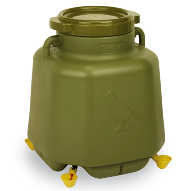 Die Outdoor Feldtränke verfügt über ein Fassungsvermögen von 40 Litern und eignet sich für die Wasserversorgung von Hühnern, Rebhühnern, Fasanen sowie anderen Vögeln und Kleintieren. Die Tränke sollte erhöht positioniert werden, um eine einfache Zugänglichkeit für mehrere Tiere zu gewährleisten.
