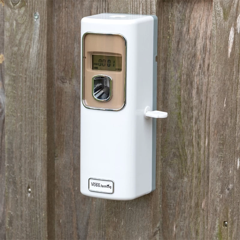 Mit dem praktischen Set aus Automatic Sprayer VF 30 von VOSS.farming und dem SAMUFLY FLY-Spray können Sie den Stall von Fliegen, Bremsen, Mücken etc. befreien und so Ihre Tiere vor dem lästigen Ungeziefer schützen. Hierzu gibt der Sprühautomat in einstellbaren Intervallen kontinuierlich das zugehörige Spray ab. Die gewünschten Sprühintervalle können dabei mithilfe der übersichtlichen LCD-Anzeige sowie der bedienfreundlichen Funktionstasten leicht eingestellt werden. Gleichermaßen lässt sich die Start- und Endzeit der Intervalle vorgeben.