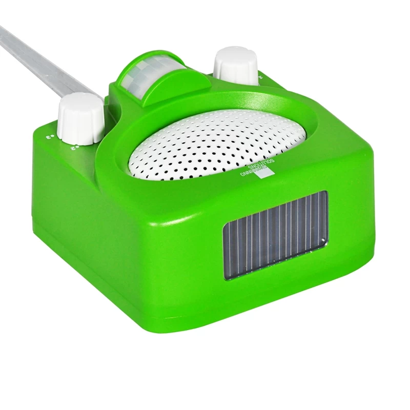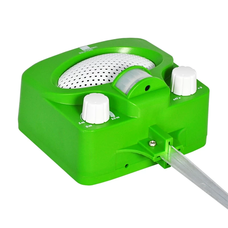 Sobald der Bewegungsmelder aktiviert wird, beginnt das Gerät, eine Gruppe von Schallsignalen auszusenden, deren Frequenzen auf der jeweiligen Einstellung beruhen. Die Tiere können sich nicht an die ständig wechselnden Gruppen von Schall- und Ultraschall gewöhnen. Sie werden aus dem beschallte Gebiet vertrieben.