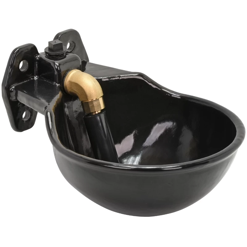 Die Tränke aus Grauguss mit emaillierter Oberfläche ist hochwertig und robust. Die Kanten sind abgerundet, um das Risiko einer Verletzung Ihres Tieres zu verringern. Eine Montage im Stall oder auf der Weide ist dank der 4 Befestigungsöffnungen einfach. Das Tränkebecken kann an der Wand oder direkt am Rohr montiert werden und der Wasseranschluss von 1/2 Zoll ist von oben oder unten möglich. Das leichtgängige Messingrohrventil verhindert Spritzen und sorgt für einen gleichmäßigen, ruhigen Wasserzufluss.