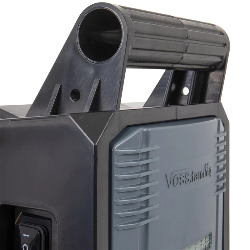 Die kompakte Bauweise und der praktische Tragegriff machen das Weidezaungerät „Apollo 3000“ von VOSS.farming ideal für den mobilen Weidezauneinsatz.