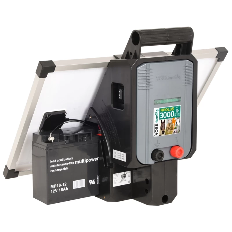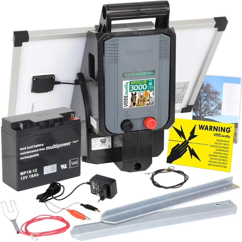 VOSS.farming Solar Weidezaungerät „Apollo 3000“ – Komplettset! inkl. 25W Solarmodul + 12V Akku + Ladegerät!
