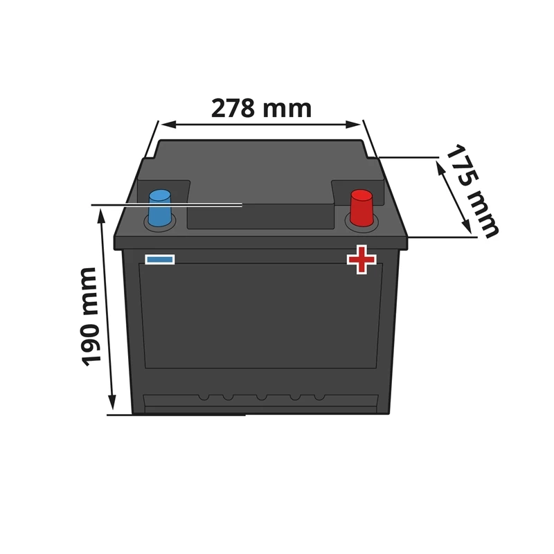 - Abmessungen der Batterie (LxBxH): 278 x 175 x 190mm