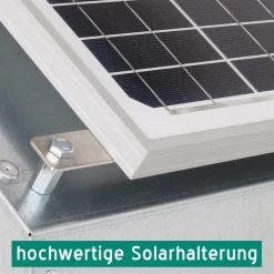 - das Solarmodul wird komplett mit Halterung und Anschlusskabel geliefert