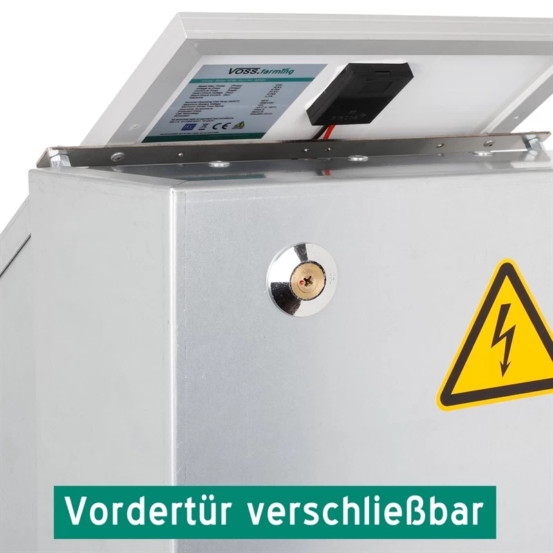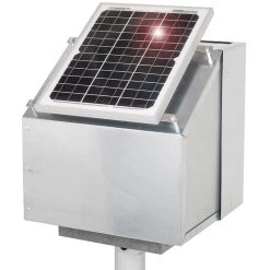 Dieses Solarsystem mit 12 Watt ist fĂĽr Weidezaungeräte mittlerer Stärke geeignet. Die „SafeBox“ und das Solarmodul stehen unter Hochspannung – ein zusätzlicher Diebstahlschutz!