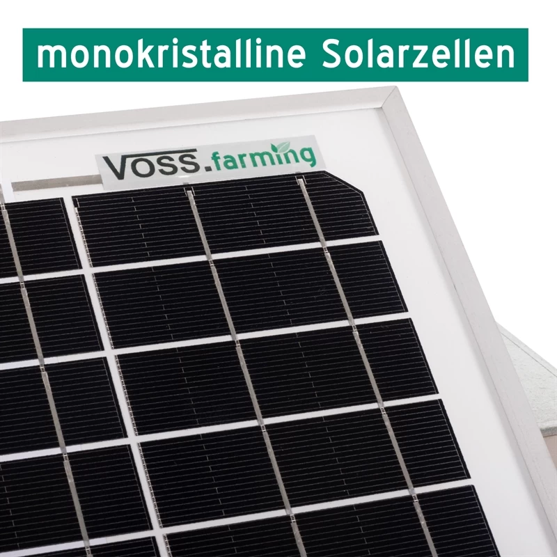 Mit diesem Solarmodul von VOSS.farming können Sie sich das häufige Nachladen Ihrer Weidezaunbatterien sparen, denn diese Aufgabe übernimmt in Zukunft das Solarsystem für Sie. Dies spart sehr viel Zeit.