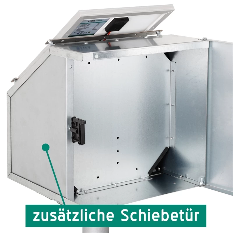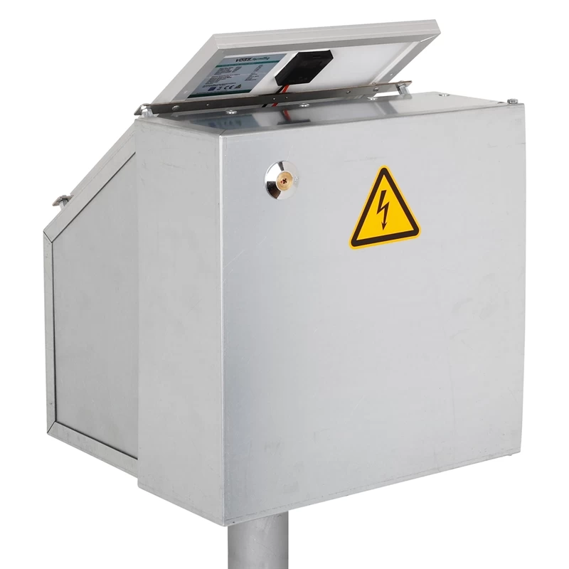VOSS.farming Solarmodul mit 12W + Anti-Diebstahlkasten „SafeBox“ + Aufstellpfahl + Zubehör