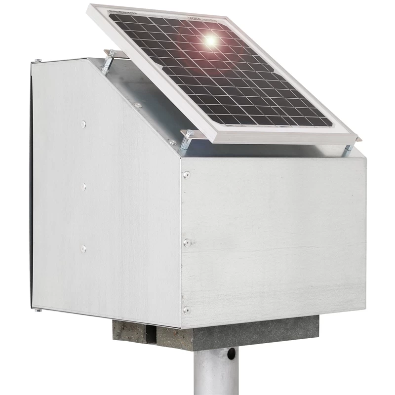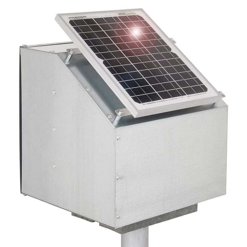- Der Solarkasten 12W eignet sich für 12V Weidezaungeräte unterschiedlicher Fabrikate.