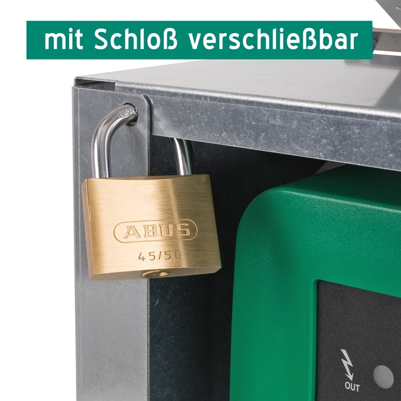 - Weidezaungerät und Akku sind geschützt vor Regen, Schnee, Eis, Hagel