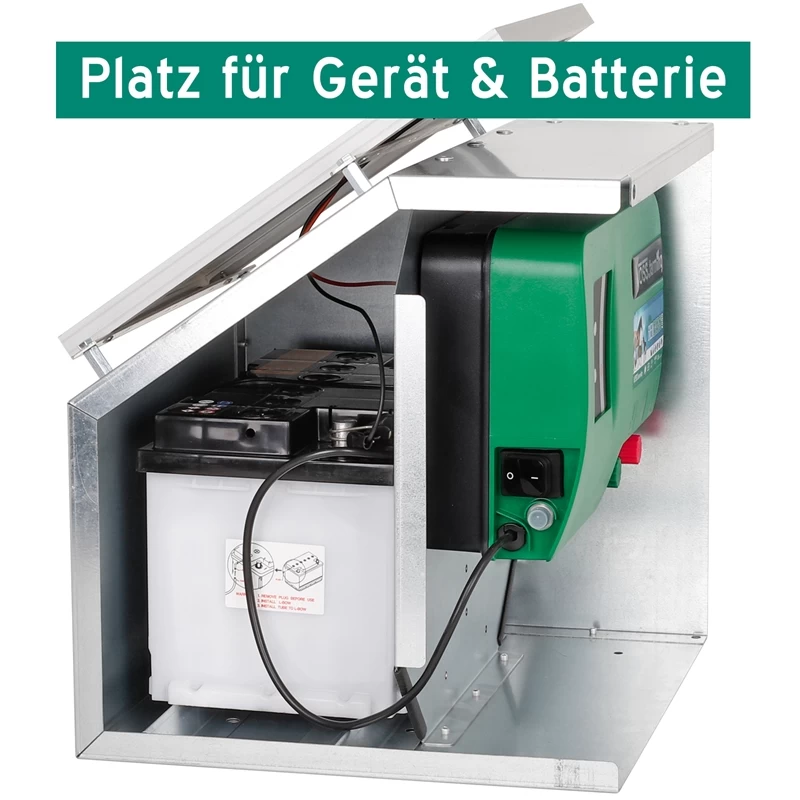 - Der Solarkasten 12W eignet sich für 12V Weidezaungeräte unterschiedlicher Fabrikate.