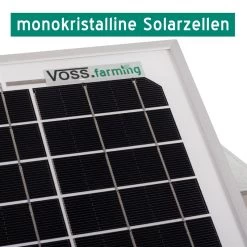 Mit diesem Solarmodul von VOSS.farming können Sie sich das häufige Nachladen Ihrer Weidezaunbatterien sparen, denn diese Aufgabe übernimmt in Zukunft das Solarsystem für Sie. Das spart nicht nur Zeit, es macht Ihren Zaun zudem noch sicherer. Es ist bereits alles fertig montiert. Sie müssen nur noch das Elektrogerät befestigen und die Kabel anschließen. Den Rest erledigt das Solarmodul der Marke VOSS.farming mit seinen 12 Watt Solarpower für Sie.