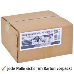 Alu-Draht mit hoher Leitfähigkeit für anspruchsvolle Einzäunungen. Bei uns erhältlich inkl. stabiler Kunststofftrommel.
