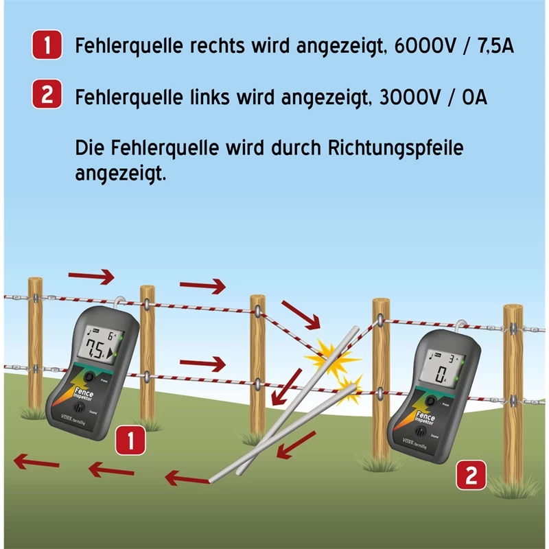 Dieses Digitalgerät ist ein Weidezaunprüfer und Fehlerfinder in einem. Es hilft Ihnen, die Störquelle am Zaun schnell ausfindig zu machen.