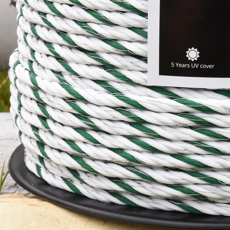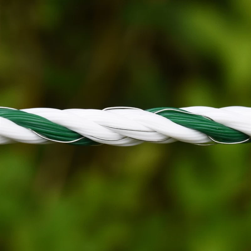 Die Farbkombination weiß-grün passt sich dem Landschaftsbild sehr gut an und ist für die Tiere deutlich erkennbar. Da Leiter- und Trägermaterial sehr gut aufeinander abgestimmt wurden, können wir Ihnen ein Seil von hoher Qualität anbieten.