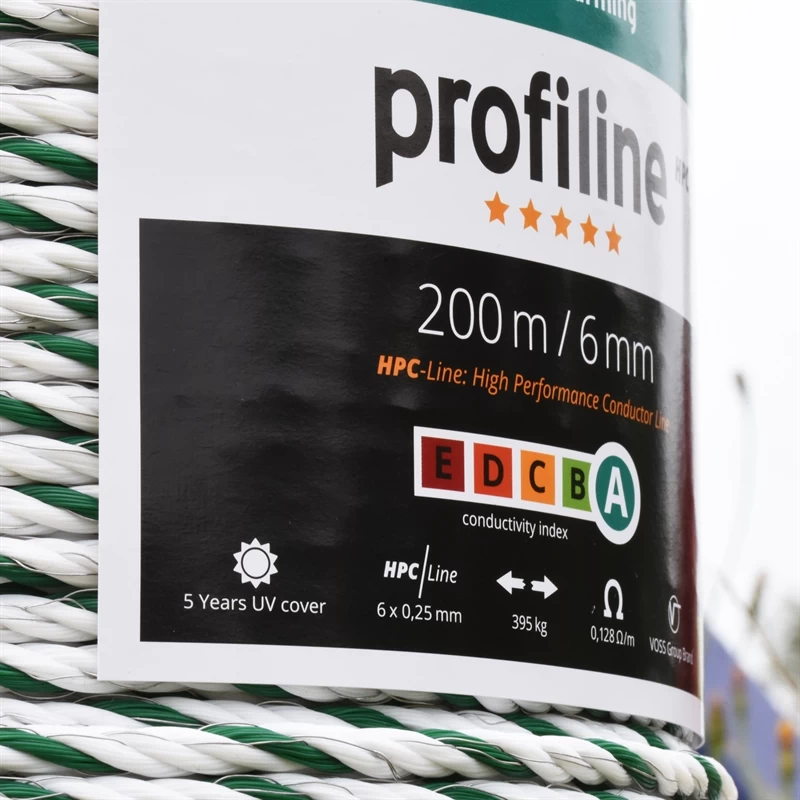 VOSS.farming Elektrozaunseil 200m, Ø 6mm, 6×0,25 HPC Powerleiter, Top-Qualität, weiß-grün